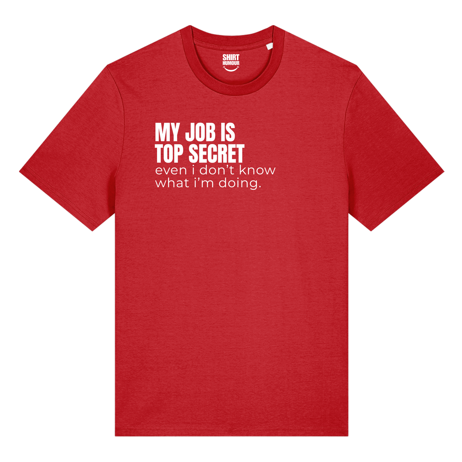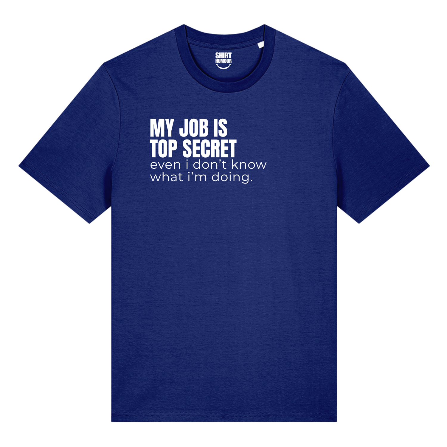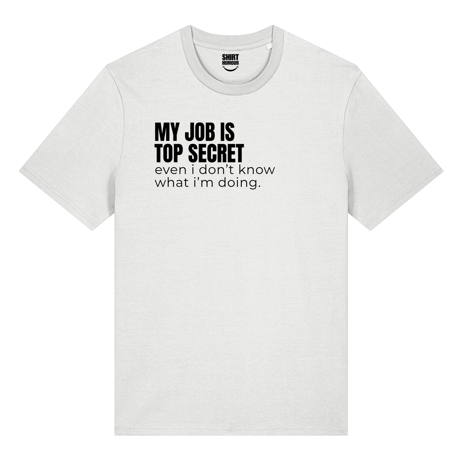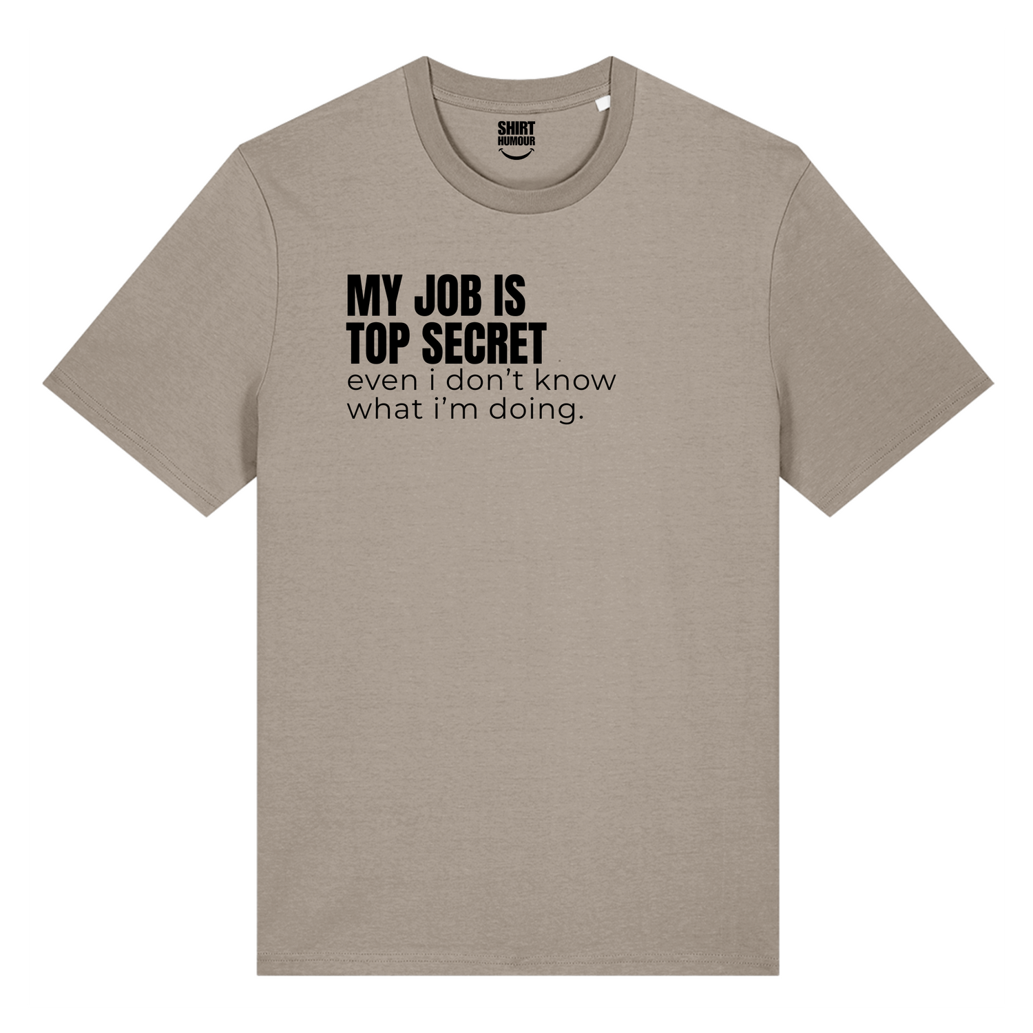 Say it with sarcasm. This minimalist text tee says it better than most people can: "My job is top secret… even I don’t know what I’m doing." Printed to order in the UK on a premium Stanley/Stella Creator tee, it's soft, sustainable, and always hilarious.